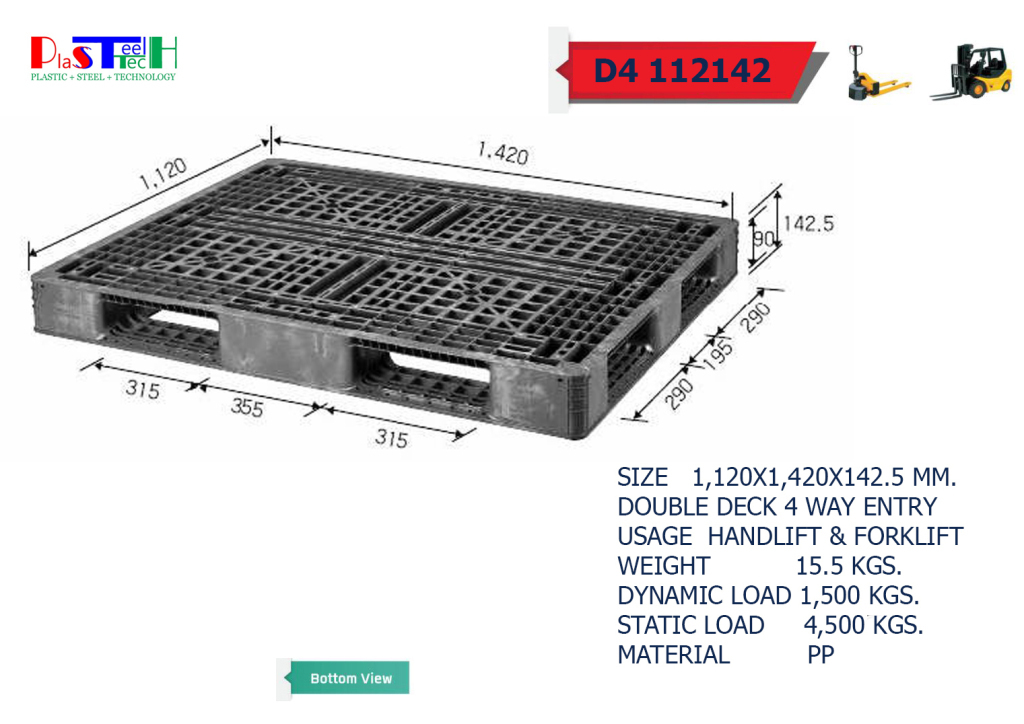 1,120×1,420×142.5 mm Plastic Pallet