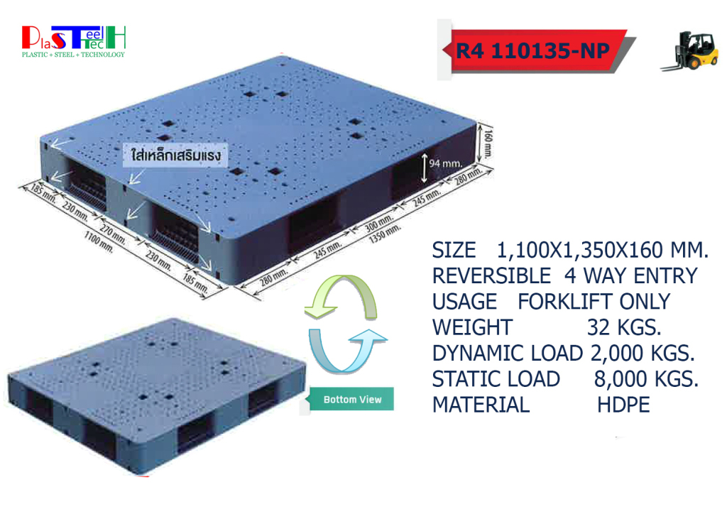 1,100×1,350×160 mm Reversible Plastic Pallet (Insert Steel)