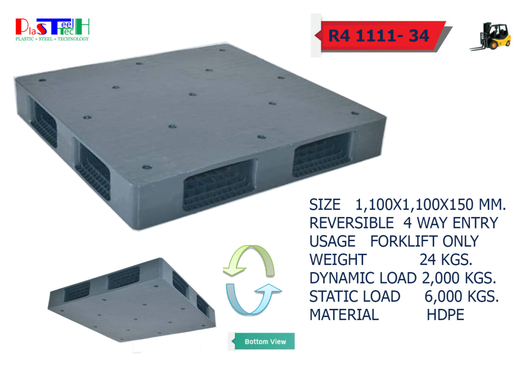 1,100×1,100×150 mm Reversible Plastic Pallet