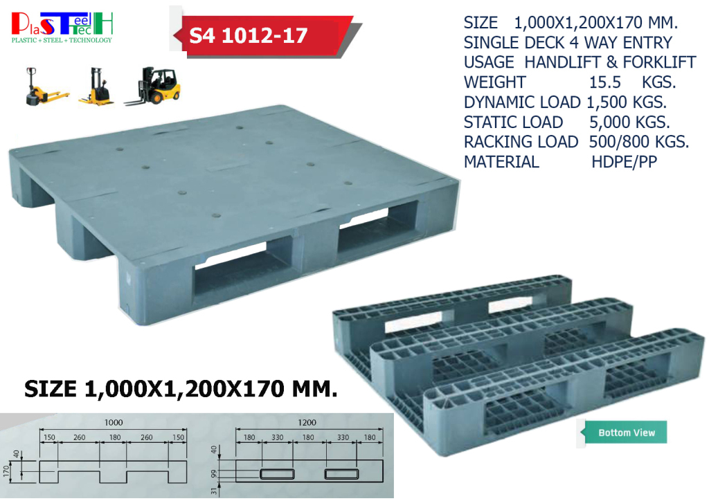 1,000×1,2000×170 mm พาเลทพลาสติก หน้าเรียบ ขา E