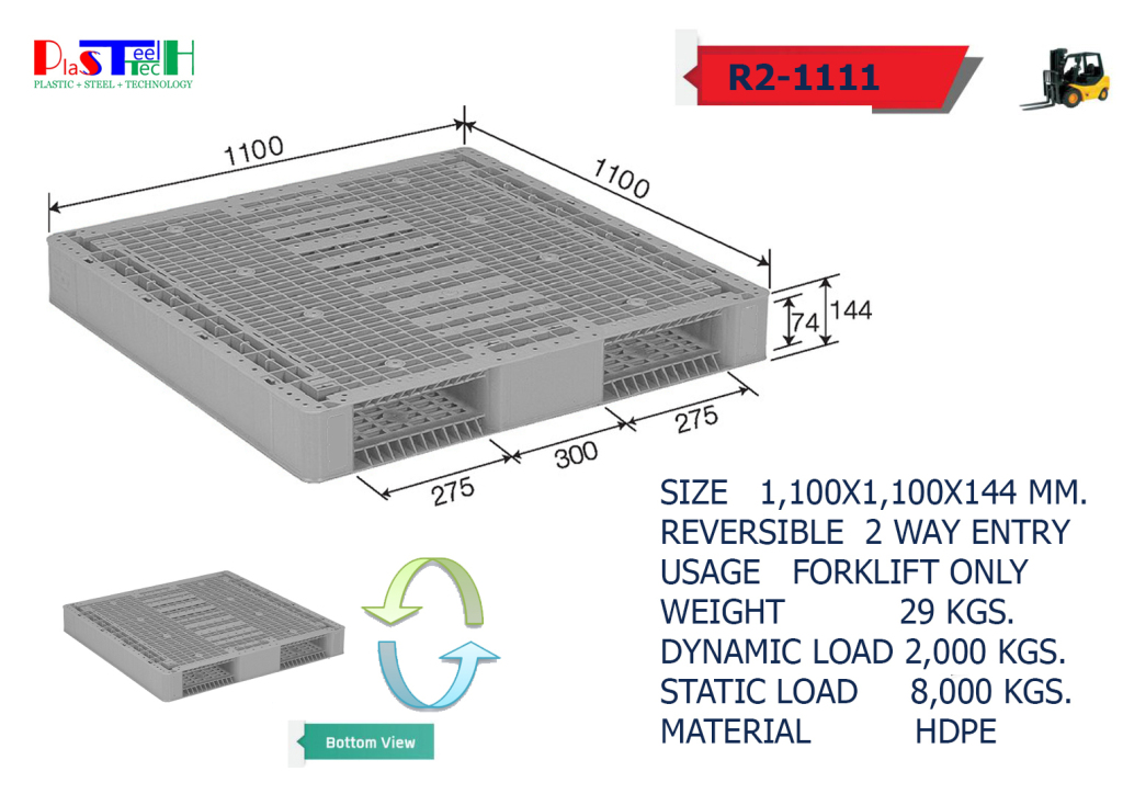 1,100×1,100×144 mm พาเลทพลาสติก 2 ทาง กลับด้านได้